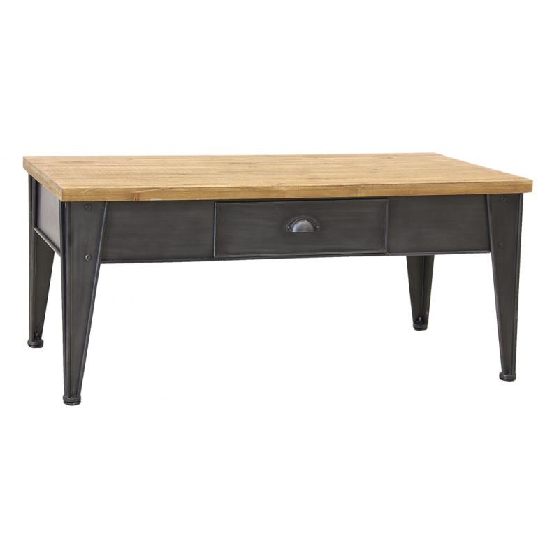 Console en métal à tiroirs avec plateau en bois.