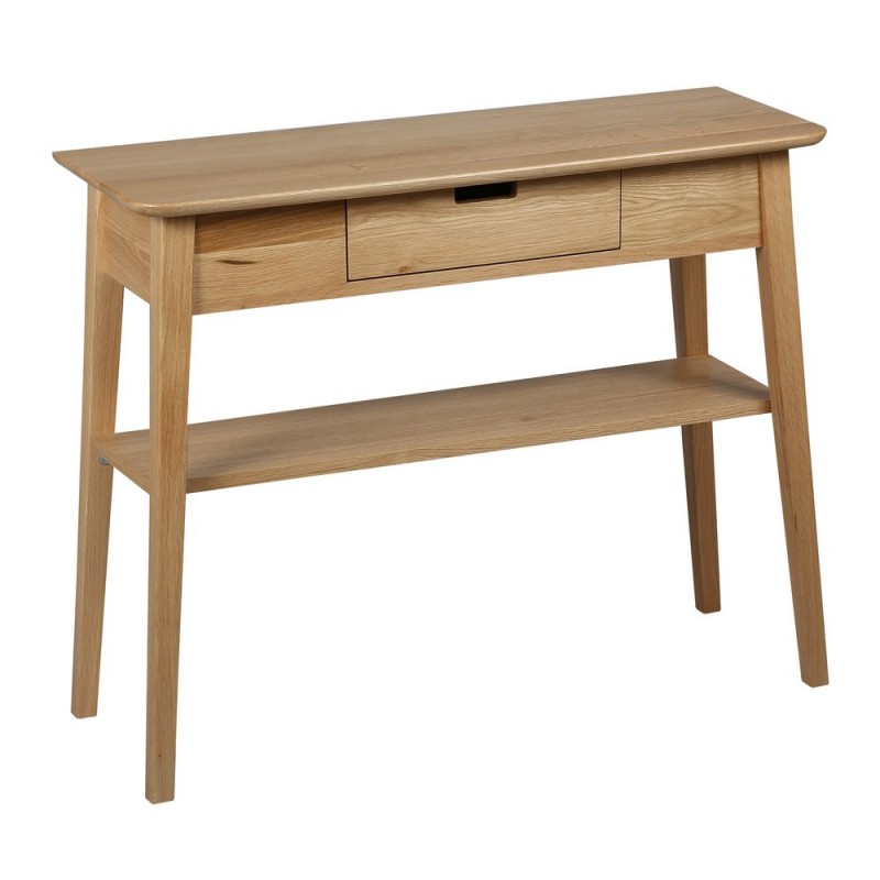 Le meuble console est de 100 cm de largeur, de 35 cm de profondeur et de 80 cm de hauteur. Le meuble console d'entrée en bois avec tiroir est livré monté gratuitement à domicile par un transporteur spécialisé dans le meuble et sur rendez-vous.