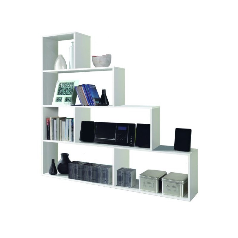 Étagère escalier 7 cases L145 x H145 cm - Blanc brillant/Chêne
